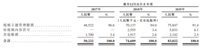 收入主要来自该企业的视频主播管理服务产生收入,及在较小程度上自该企业的短视频内容许可及其他服务产生收入。