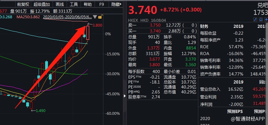 兑吧(01753)股价从低点的1.49港元涨至3.74港元,涨幅超150%。