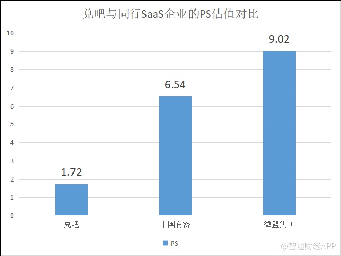 不过,若与同行相比便能发现,即使在大涨150%以后,兑吧的估值仍未完全修复。此处用SaaS企业通用的PS估值法计算,以wind的一致性预期来看,截至6月5日收盘,微盟2020年的PS估值为9.02倍,中国有赞2020年的PS估值为6.54倍。若预测兑吧2020年的收入较2019年时同比增长30%,那么兑吧当前市值对应的2020年的PS估值仅有1.72倍。与微盟、有赞相比,兑吧PS估值有较大修复空间。