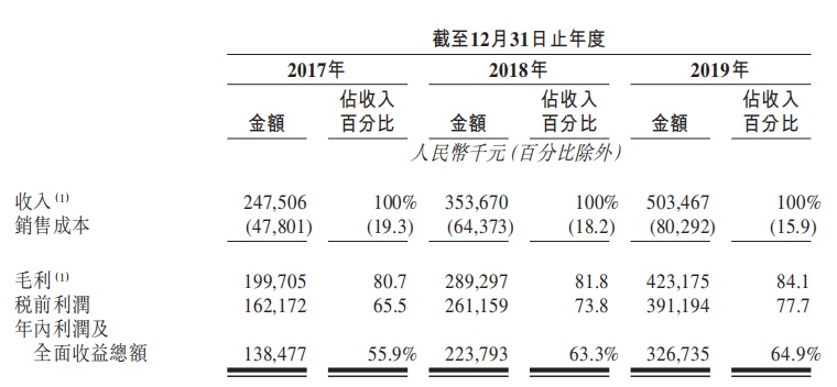 康基医疗的毛利从2017年的人民币1.997亿元增至2018年的人民币2.893亿元,并进一步增至2019年的人民币4.232亿元,主要由于销量增加。毛利率从2017年的80.7%增至2018年的81.8%,并进一步增至2019年的84.1%,主要由于在往绩记录期间一次性产品通常比重复性产品利润率更高,且一次性产品占康基医疗销售总额的比例更高。