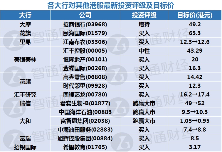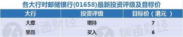 一、各大行对邮储银行(01658)最新投资评级及目标价