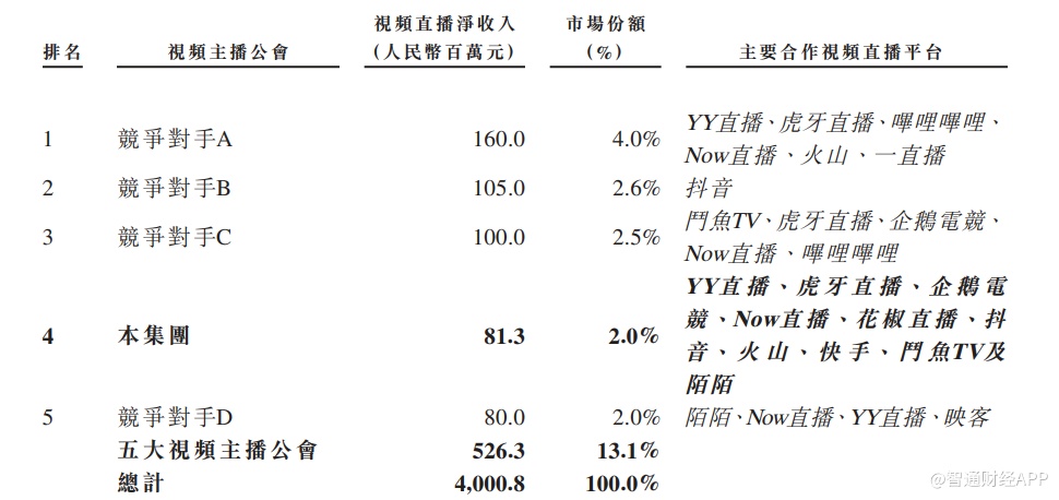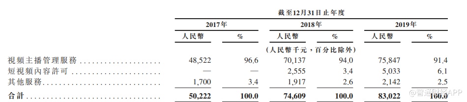 据智通财经APP了解,过去三年,来自视频主播管理服务的收入占比均超90%。