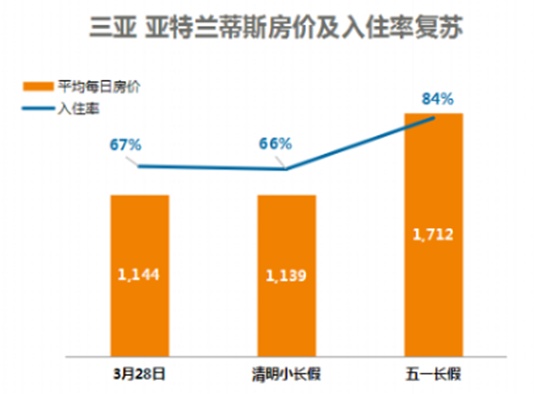 而在此次公共卫生事件期间,即便在年初之际受到卫生事件的负面影响,于3月28日重新营业后,入住率持续高于70%。数据显示,五一期间,三亚亚特兰蒂斯的客房入住率高达84%,持续领跑三亚高端酒店,而平均每日房价的稳步提升更是彰显其高端定位下的高议价能力。