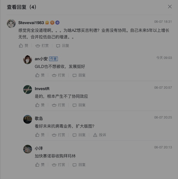 微博大V伊洛牧认为,AZ吃下吉列德?感觉挺难。瑞德西韦炒作加成,现有市值就有970亿美元,手里还有现金200亿美元。吉列德现有产品主要在抗病毒+收购的Kite Pharma细胞治疗血液肿瘤,HCV昙花一现(去年医保谈判3个丙肝产品国内降价90%),细胞治疗难堪大任,现在超7成收入还来自于抗HIV治疗。目前布局产品线主要在抗病毒、炎症疾病、肿瘤。