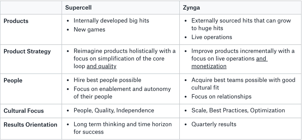 Supercell与Zynga战略差异的简化视图: