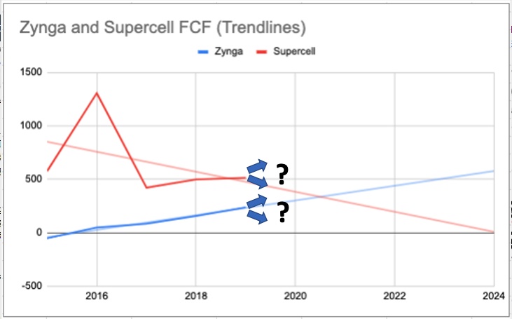 因此,对这两家公司而言,最大问题是对未来现金流的预期——是会遵循过去5年的趋势,还是Supercell会再次推出一款重磅产品,从而扭转其收入和自由现金流的曲线走势?