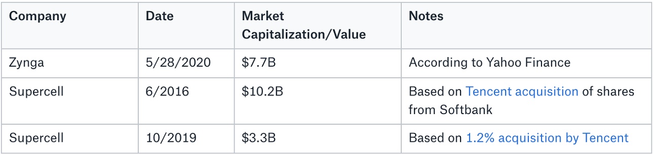 Supercell与Zynga估值对比