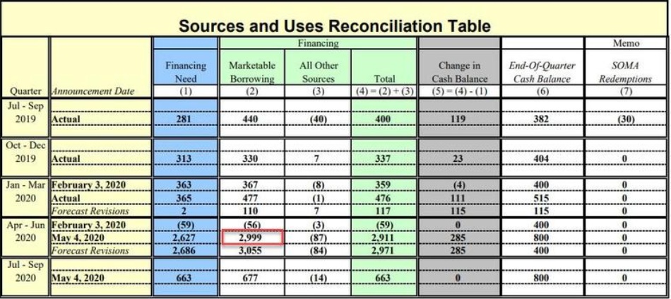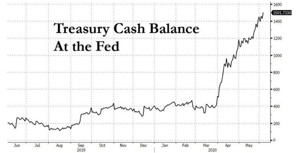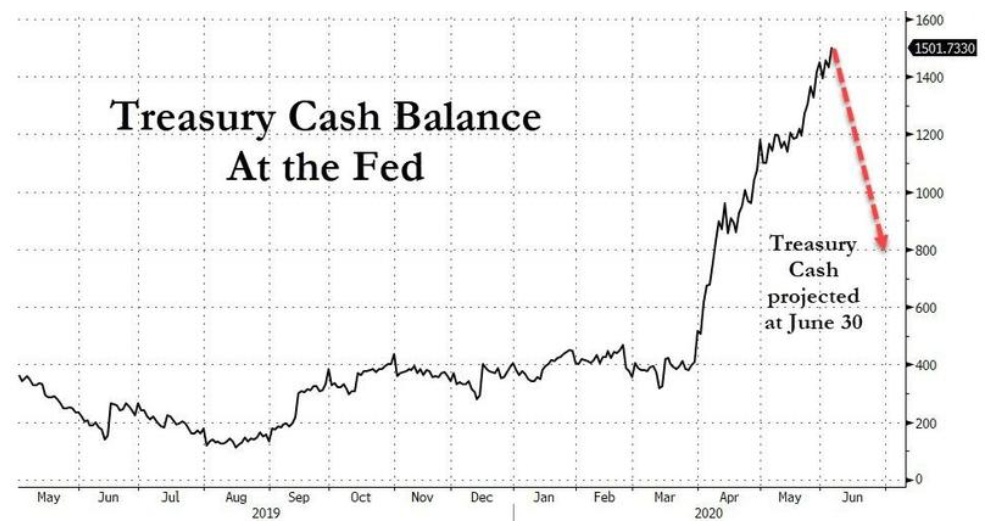 对此,北欧联合银行(Nordea)认为,世界各地的政府似乎都“高估了”发行需求,例如,USTs在美联储的现金账户达到惊人的1500亿美元,比季末目标高出惊人的7000亿美元。该行表示:“既然为援助计划预留的美元难以离开美国财政部账户,美国国债发行是否会大幅推迟到2020年下半年?另外,如果这7000亿美元真的离开了美联储的账户,并在季末前流入实体经济,那么这可能会极大地提振风险资产。”