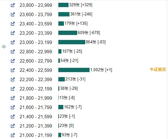 智通财经APP获悉,截至6月9日,恒指最新的牛熊街货比例34:66。摩根恒指牛熊证街货分布图中的数据显示,熊证街货重货区在25400-25599区间,该区间最新熊证数量为1870张,较上一交易日增加611张,最多新增也在该区间。牛证街货重货区在22400-22599区间,该区间最新牛证数量为1002张,较上一交易日新增1张,最多新增区间在23800-23999区间,该区间最新牛证数量为329张,新增329张。
