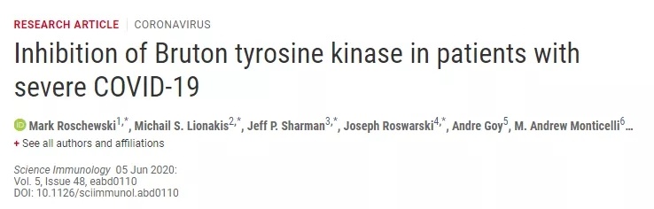 此次发表的论文摘要显示,在19例接受治疗的重症住院患者中,在10-14天的疗程中,Calquence通常在1~3天内改善了大多数患者的氧合作用,且没有明显的毒性。大多数患者的炎症指标C反应蛋白和IL-6迅速恢复正常,淋巴细胞减少症也与氧合改善有关。在治疗结束时,补充氧气队列中8/11(72.7%)患者已出院;机械通气队列中4/8(50%)患者已成功拔管。而且,与健康志愿者相比,重症COVID-19患者的血液单核细胞中IL-6产生增加,BTK活性显著升高。