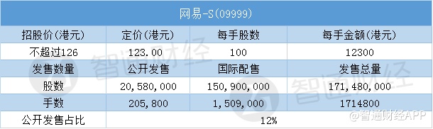 智通财经APP获悉,6月10日,网易-S(09999)配售结束。配售招股价不超过126港元,最终定价123港元,每手12300港元。