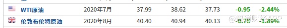 截至发稿,WTI原油跌2.44%,报37.99美元/桶。布伦特原油跌1.89%,报40.40美元/桶。
