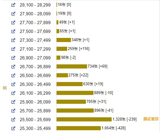 智通财经APP获悉,截至6月10日,恒指最新的牛熊街货比例38:62。摩根恒指牛熊证街货分布图中的数据显示,熊证街货重货区在25500-25699区间,该区间最新熊证数量为1328张,较上一交易日减少239张,最多新增区间在27100-27299区间,该区间最新熊证数量为259张,新增116张。牛证街货重货区在22400-22599区间,该区间最新牛证数量为962张,较上一交易日减少39张,最多新增区间在24200-24399区间,该区间最新牛证数量为437张,新增437张。