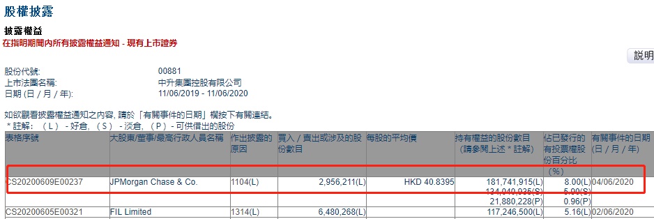 智通财经APP获悉,香港联交所最新资料显示,6月4日,小摩增持中升控股(00881)约295.62万股,每股作价40.8395港元,总金额约为1.21亿港元。增持后最新持股数目约为1.82亿股,最新持股比例为8.00%。
