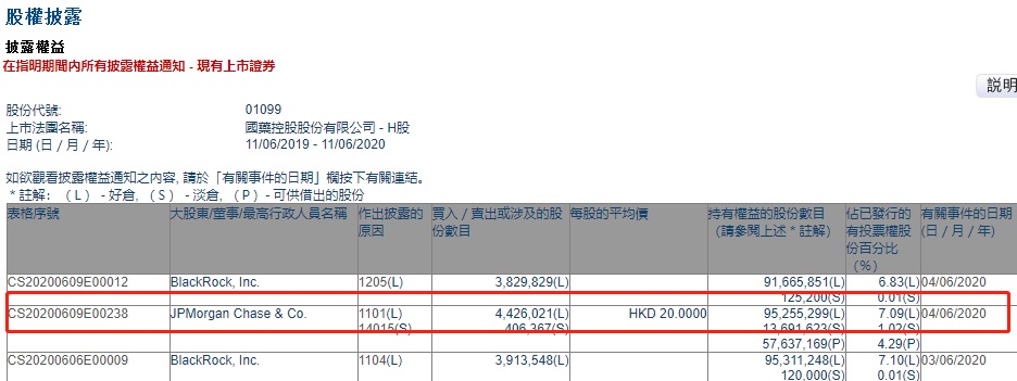 智通财经APP获悉,香港联交所最新资料显示,6月4日,小摩增持国药控股(01099)约442.60万股,每股作价20港元,总金额约为8852.04万港元。增持后最新持股数目约为9525.53万股,最新持股比例为7.09%。