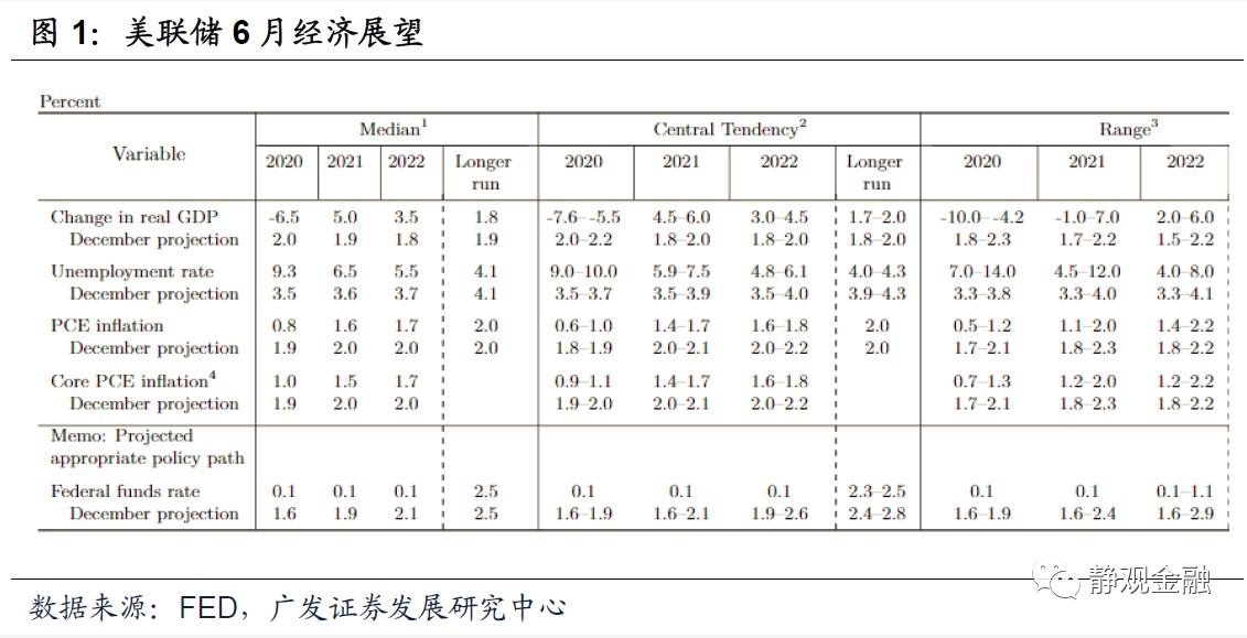 一、美联储预计公共卫生事件对经济存在长期负面影响,预计两年内不会加息