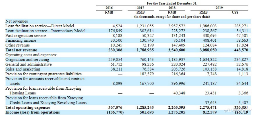 据小赢科技财报,公司收入主要来自于为投资者与借款人进行配对服务(贷款便利化服务)以及在贷款有效期内提供的其他服务(原始申请后服务和担保服务)所收取的费用。