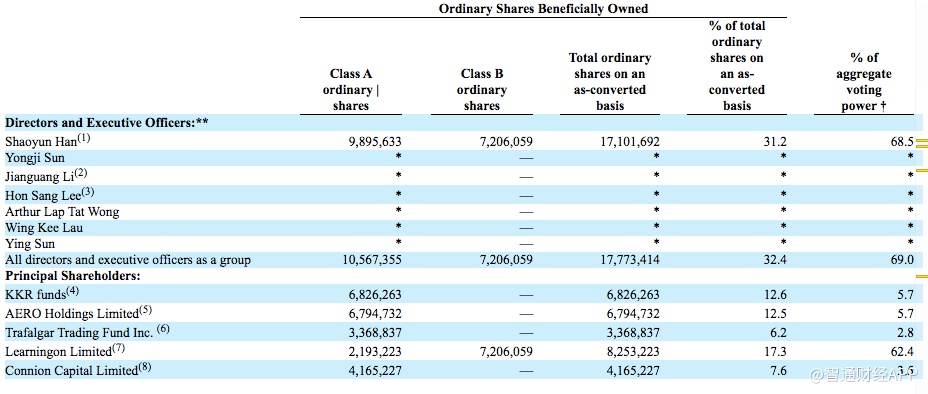 KKR基金名下持有6,826,263股A类普通股,持股比例为12.6%,投票权为5.7%。