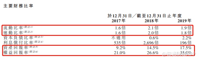 截至2019年12月31日止年度,集团的流动比率为1.9倍,速动比率为1.8倍,资产回报率为17.5%,权益回报率为35%,利息偿付比率为196倍。