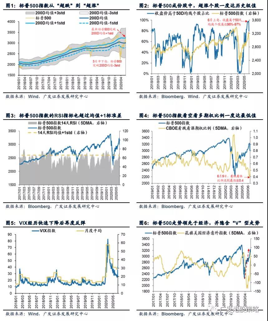 联储“宽松无底限”的背后,美股快速反弹并进入“超买”状态,但美国复工加速、“宽松依赖症”的幻觉效应依然强效,市场的分歧并没有伴随高估和波动增加而消失。站在估值屡创新高之际,美股市场“超买”的状态是否会持续,对于风格又有何影响?本周我们延续前期关于海外波动的讨论,就美股的后续走势进行详细剖析。