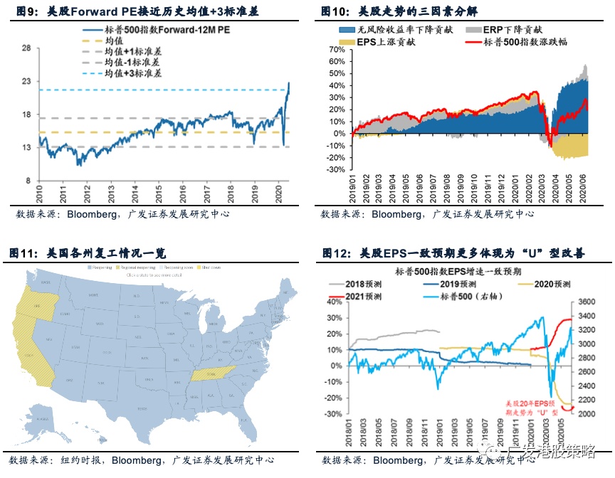 此外,不利于估值和EPS修复的事件还包括:(1)美国因弗洛伊德事件引发的抗议活动尚在发酵,为复工、经济走向、大选行情增添了更多变数;(2)非常规财政刺激将阶段性退出,3月底通过的《病毒援助、救济和经济安全法案》(CARES法案)中的部分援助和救济措施将在7月31日到期,需要更多刺激政策接力。