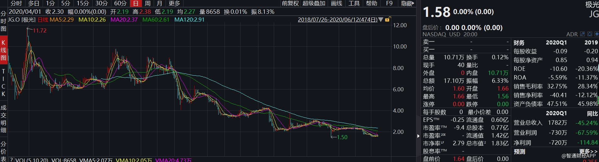不过,并非所有的SaaS概念股都受到市场青睐,极光(JG.US)便是被冷落的SaaS企业之一。2020年以来,极光股价一路向下,年内最大跌幅超50%,并于3月18日创下历史新低1.5美元每股。