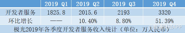 事实上,极光的开发者服务是三大业务中发展最好的一项,这从2019年各季度该业务的收入变化中便能看出,环比均录得正增长,2019年第四季度时的环比增幅高达51.39%。虽然2020年第一季度时开发者服务的收入环比有所下跌,但这是因为一季度是淡季以及受到了公共卫生事件的影响。随着公共卫生事件过后复工复产的持续推进,预计极光的开发者服务将继续保持增长。
