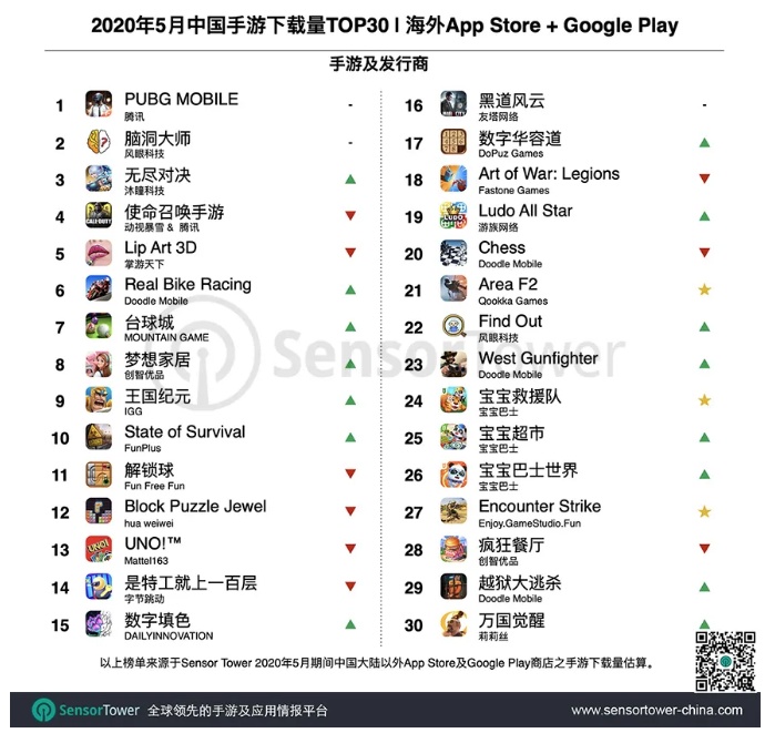 随着中国厂商将更多资源投放至海外市场,以及海外运营能力的进一步提升,本期榜单入围门槛增至1000万美元,较去年同期增长34%。
