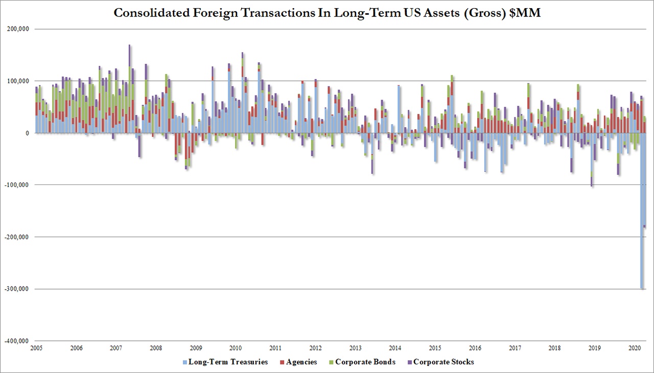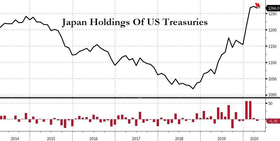 官方数据显示,在公共卫生事件肆虐的今年4月,海外投资者继续抛售美债,两大美债持有国中国和日本均减持,日本虽然仍是最大持有国,但今年以来首度抛售。