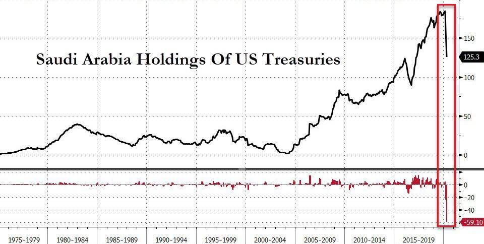 值得一提的是,在4月减持前,3月全球最具流动性的美债市场出现了历史罕见的抛售潮,迫使美联储亲自下场推出无限量QE,上月TIC报告显示,3月海外投资者总体抛售美国国债规模创新高。在十大持有美债的美国以外国家地区中,有半数“债主”3月的抛售规模均超过100亿美元,持仓十名开外的沙特抛售超过200亿美元也创新高。