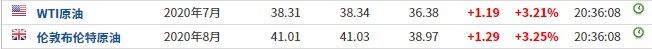 截至发稿,WTI原油涨3.21%,报38.31美元/桶。布伦特原油涨3.25%,报41.01美元/桶。