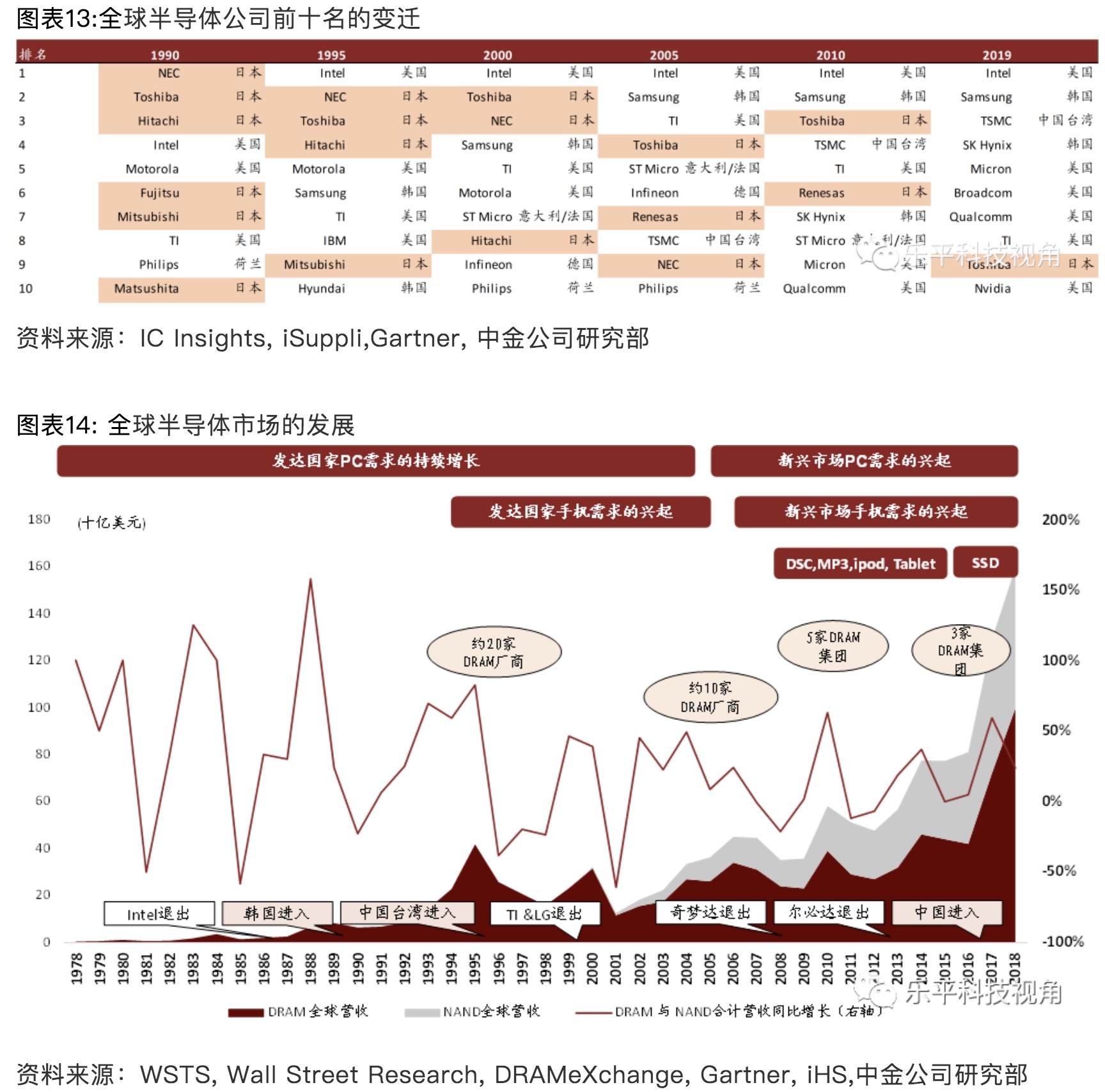 日本半导体行业兴衰的经验与教训:80年代日本凭借举国体制在半导体通用技术上取得突破,并在DRAM等产品上达到了世界领先的质量及成本优势;90年代后,日本半导体走向衰落,我们认为主要是由于1)固守IDM模式,在与台积电和美国设计公司主导的“Fabless+Foundry”模式竞争中落于下风;2)对CPU投资不足,错过了PC与智能手机两次大的行业趋势;3)DRAM在市场竞争与资本开支上落后于韩国。日本半导体行业的兴衰史告诉我们,半导体进口替代需要加强产业链之间的有机合作,同时需要在行业发展过程中抓住商业模式、下游应用的新兴趋势,实现持续增长。