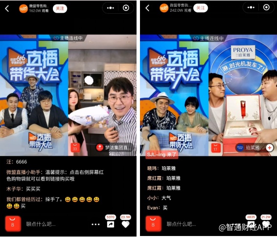 各位卡司的花式带货,不仅吸引众多粉丝来到微盟直播间,在与品牌连麦过程中,更是把用户源源不断引入品牌直播间下单抢购种草好物。