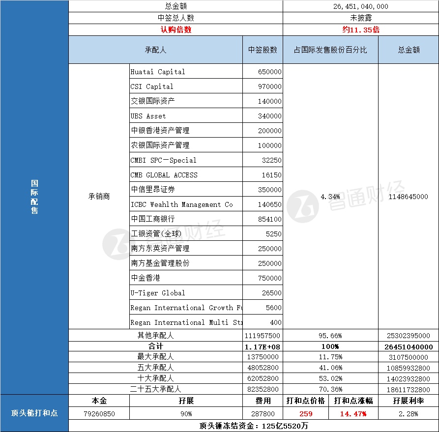 国际配售申购人数未披露,认购倍数约11.35倍。