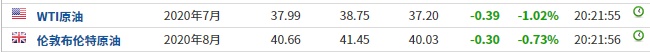 截至发稿,WTI原油跌1.02%,报37.99美元/桶。布伦特原油跌0.73%,报40.66美元/桶。