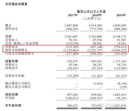 2017年至2019年,其总收入由人民币38.68亿元增加至人民币50.37亿元,年复合增长率为14.1%,净利润由2017年的人民币3.5亿元增加至2019年的人民币10.04亿元,年复合增长率为69.2%。