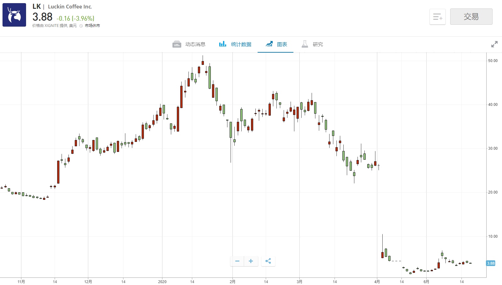 智通财经APP获悉,6月18日(周四)美股盘前,截至16:30,瑞幸咖啡(LK.US)跌3.35%,报3.75美元。