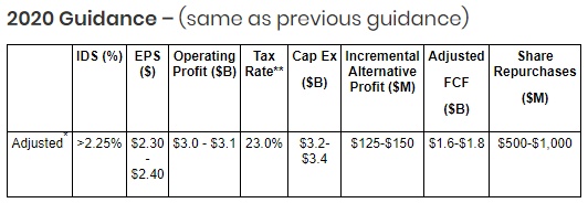 此前,该公司于美东时间4月1日公布2019年Q4业绩时,也公布了2020年的业绩指引。该公司预计,2020年调整后的每股收益为2.30至2.40美元。