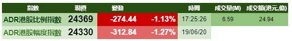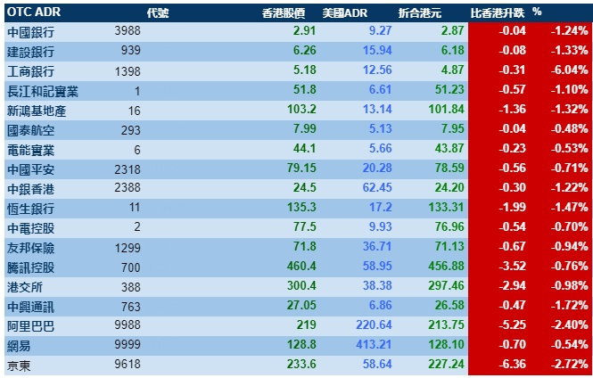 智通财经APP获悉,隔夜美股涨跌不一,港股ADR指数收跌,按比例计算,收报24369点,跌274.44点或1.13%。