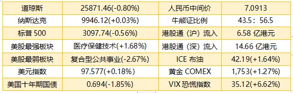 1、上周五,市场憧憬全球经济迅速复苏,美股全线高开,道指盘初迅速涨超300点。盘中因美国部分州卫生事件反弹,道指高台跳水,跌幅一度扩大至300点。截至周末收盘,标普500指数跌17.4点跌幅0.56%,报3097.99点;纳指涨3.10点涨幅0.03%,报9946.12点;道指跌207.1点跌幅0.79%,报25873.04点。港股ADR指数收跌,按比例计算,收报24369点,跌274.44点或1.13%。