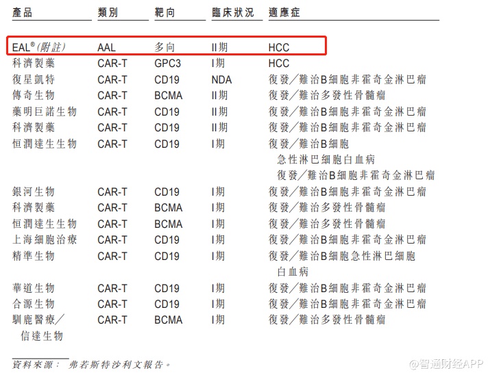 不难看出,在AAL技术支撑下,永泰生物的EAL®产品已经走出了一条独特的实体瘤治疗路径,且已形成明显优势。据智通财经APP了解,截至目前,中国尚未有上市的细胞免疫治疗产品,仅有15种细胞免疫治疗产品还处在临床试验阶段,其中的13种产品用于治疗血液癌症,仅有永泰生物的EAL®及科济制药用于治疗实体瘤,且EAL®与科济制药由于针对不同的用户群体,并不是替代产品或代用品。