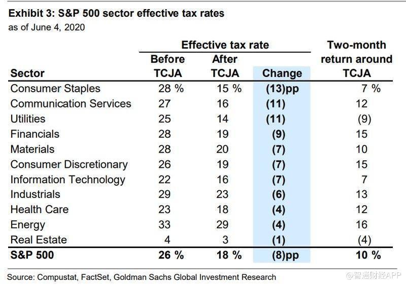 此外,David Kostin解释道,根据一般经验法则,有效企业税率每变化一个百分点,标普500指数的盈利就会跟着变化1.2%,即每股2美元。