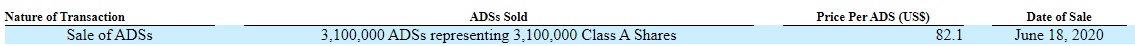 Cayman于6月18日向一家经纪商直接出售了其持有的汽车之家310万股ADS(相当于310万股A类股),每ADS售价为82.1美元,套现总额2.5451亿美元。