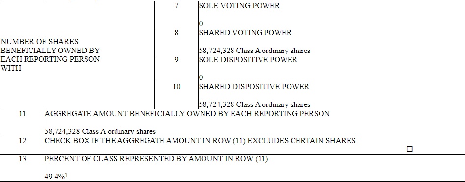 上述中国平安名下持有的58,724,328股A类普通股均拥有共享投票权和共享处置权。