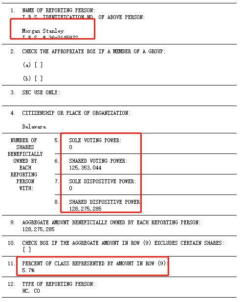 SEC文件表明,上述A类股的实益所有属于摩根士丹利相关的运营实体,其A类股所有权根据协议与摩根士丹利分离。因此,摩根士丹利仅拥有上述股份的共同投票权和处置权。