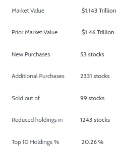 前五大卖出股分别是:Linde AG(该公司为Linde plc的子公司,其股票在法兰克福交易所交易)、摩根大通(JPM.US)、波音(BA.US)、美国银行(BAC.US)和富国银行(WFC.US)。