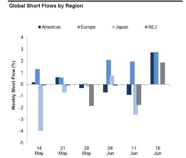 在北美地区,多头买入略多于卖空,从而使该地区出现净买入现象。