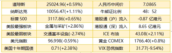1、市场忧虑美国卫生事件升温,道指周一低开后曾跌近200点,航空、银行股走弱,中段转跌为升,纳指创历史最高收盘纪录。截至收盘,道指涨153.50点或0.59%,报26024.96点;纳指涨110.35点或1.11%,报10056.47点;标普500指数涨20.12点或0.65%,报3117.86点。港股ADR指数全日走好,按比例计算,收报24636点,升125.13点或0.51%。