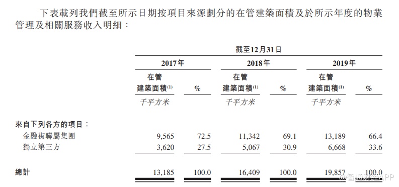 相应地,来自金融街联属集团的物管及相关服务收入占比呈下降趋势,从2017年的83.5%降至81.1%,显示公司正逐渐减少对金融街联属集团的依赖。