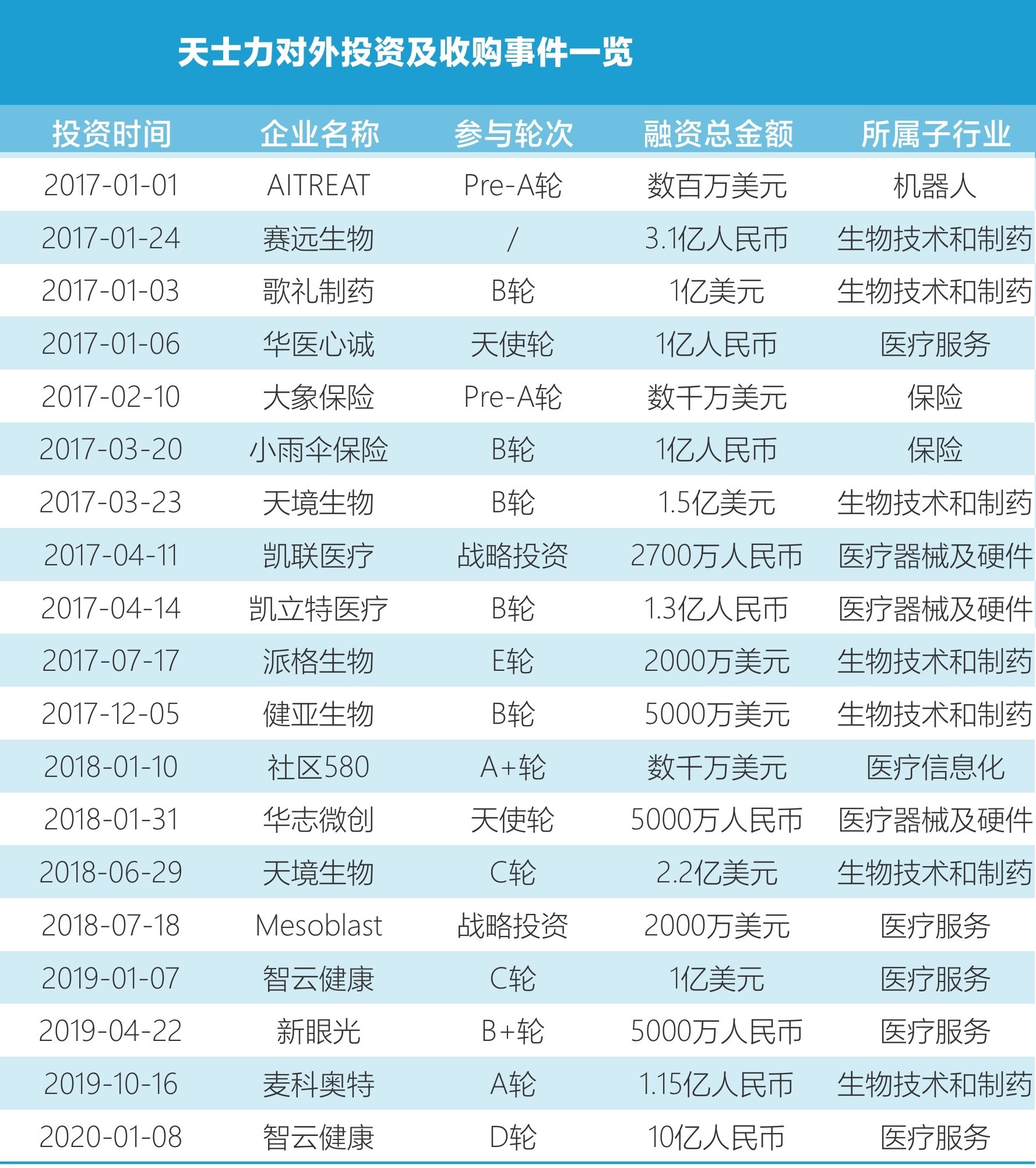 带着优异销售成绩,天士力资本近年在创投圈也声名鹊起,光2017-2018年两年在大健康领域投资事件就有15起,其中包括已经成功A、H股上市的济川药业、美年大健康、贝瑞和康、易明医药、歌礼制药;美股上市的天境生物;伦股上市的顶尖医药公司Pharnext等一批优秀公司。
